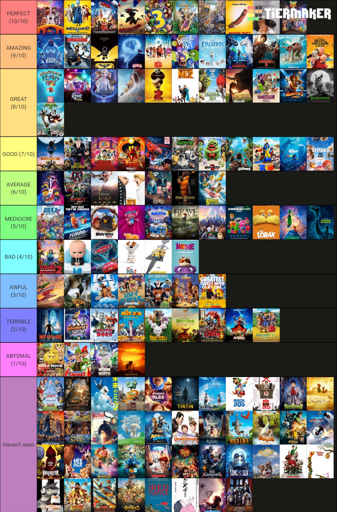 Candy The Cat On Twitter Saberspark Here S My Animated Movies Of The Decade Tier List Unpopular Opinions Warning Https T Co Ewp2z4zjkk Twitter